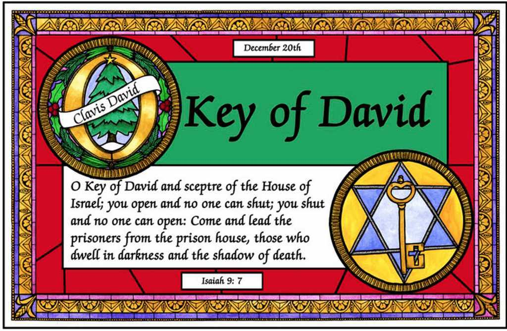 Good Morning Friends and Digital Neighbors!! Happy Saturday! But wait, there’s even more O Antiphon & Messianic goodness for your morning musing. Key of David! Keys had such symbolic value in life; I’m not sure keys are as significant today as they were in the past. Our keys have morphed into passwords, keypads, and other code numbers that serve the same purpose. As today’s O Antiphon indicates, keys possess the power to open and lock, to grant or deny access and entrance. Being given the keys to whatever was a sign of trust and honor. The symbolism of a key was something of a status symbol. Being given a key to your home and finally achieving the keys to the car were significant moments in life. Keys indicated the maturity to handle the responsibility that would accompany them. If you can’t handle the responsibilities, you don’t get to keep the keys.