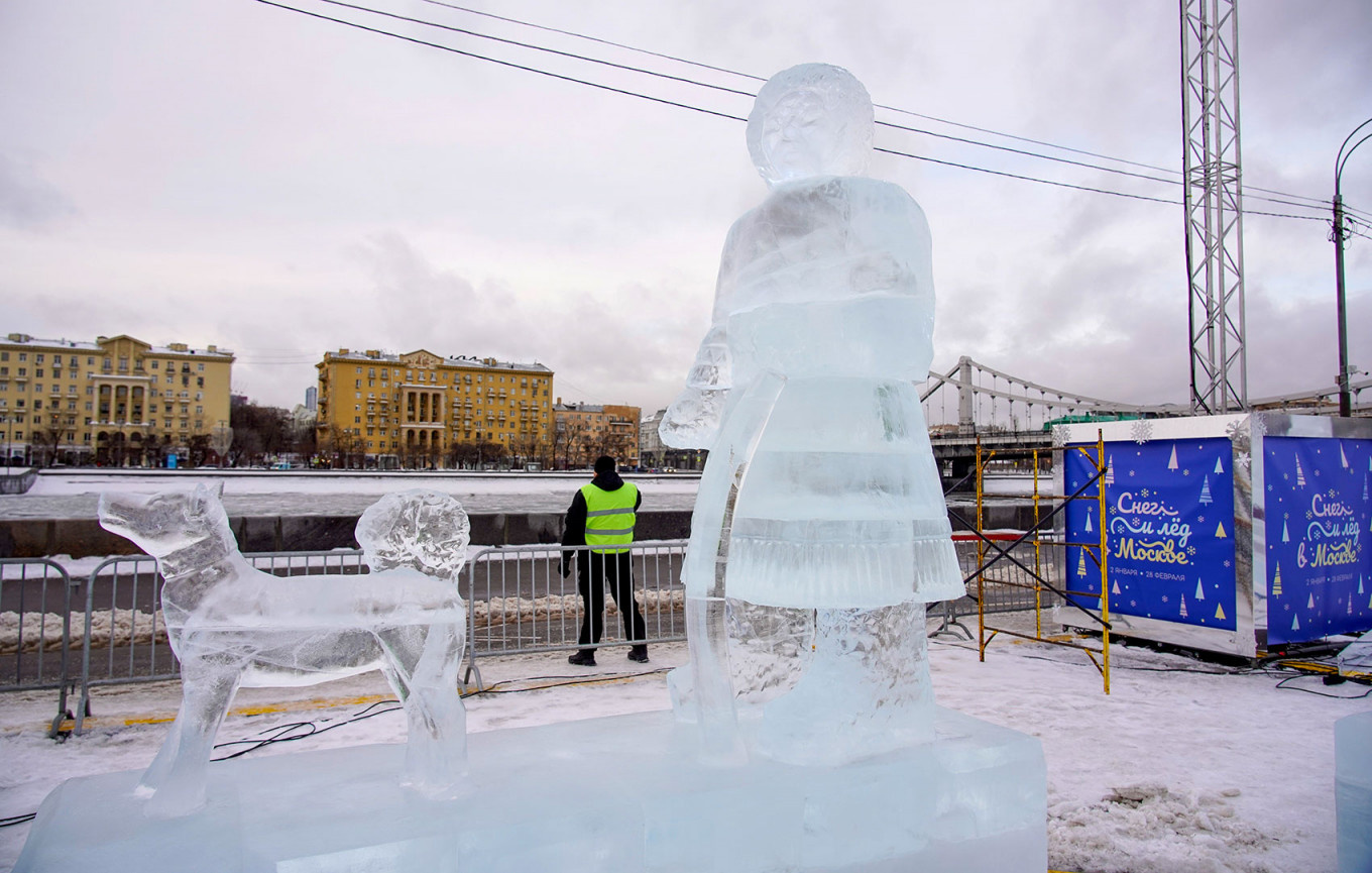 Walking on the Embankment of the Moskva River, on my way to Gorky Park, I took Some Snaps with my Phone, of the Various Ice & Snow Sculptures along the way.🥶