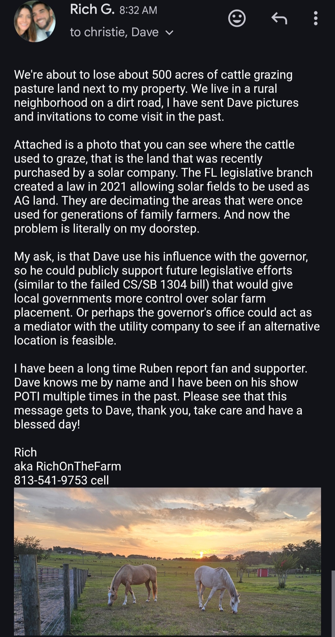 All the cows in the attached picture have been removed recently from that property and I'm afraid the construction of the solar farm will be imminent.